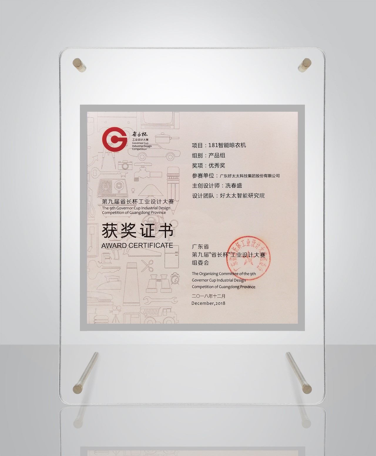 由廣東省人民政府工業(yè)和信息化廳主辦,廣東省工業(yè)設(shè)計協(xié)會承辦的第九屆“省長杯”工業(yè)設(shè)計大賽經(jīng)過約4個月的賽程已經(jīng)結(jié)束。本屆“省長杯”在全省21個地市,15個分賽區(qū)充分發(fā)動,從破紀(jì)錄的32051件參賽作品中,選出513件決賽作品,并最終決出30件獲獎作品和30個單項獎。其中,好太太智尊系列GW-181憑借創(chuàng)新的產(chǎn)品工業(yè)設(shè)計脫穎而出,榮獲“省長杯”工業(yè)設(shè)計大賽獎。